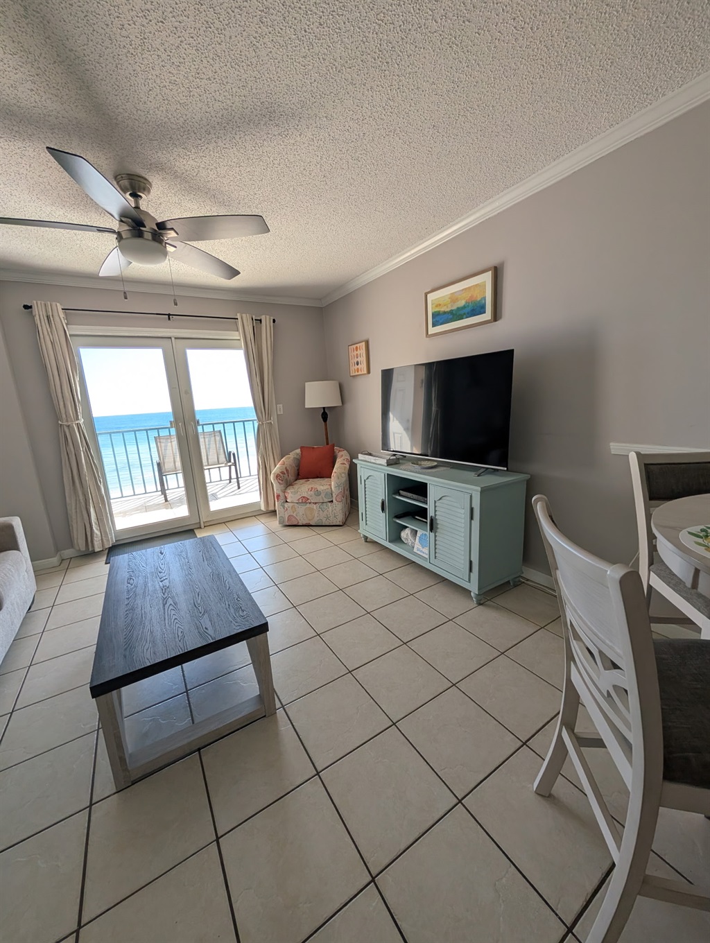 2 Bedrooms • 2 Bathrooms 2 Baths • Sleeps 1-6Escape to our bright, modern 2BR/2BA condo with sweeping ocean views, just steps from sandy beaches and vibrant downtown. Perfect for couples or families, enjoy sunrise coffee on the balcony and sunset strolls by the water.5th Floor with Oceanfront Balcony views with super easy Pool & Beach access. Wi-Fi, Cable included. One mile from the Hangout and all the shopping/dining that surrounds it. 2 Bedrooms & 2 Bathrooms w/fully equipped kitchen & dining space.